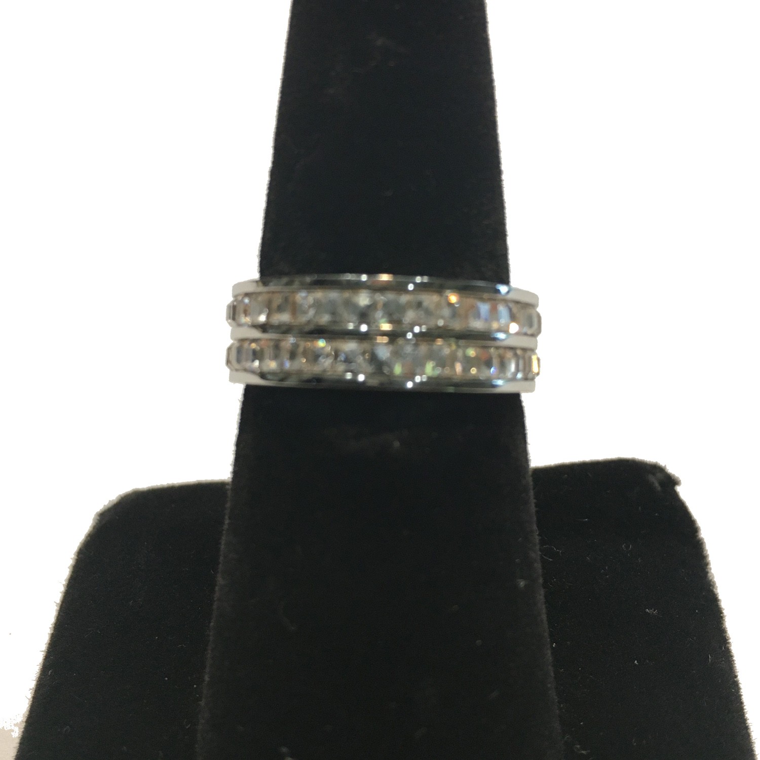 DOUBLE ROW CLEAR CRYSTAL LADIES RING ALL AROUND STAINLESS STEEL