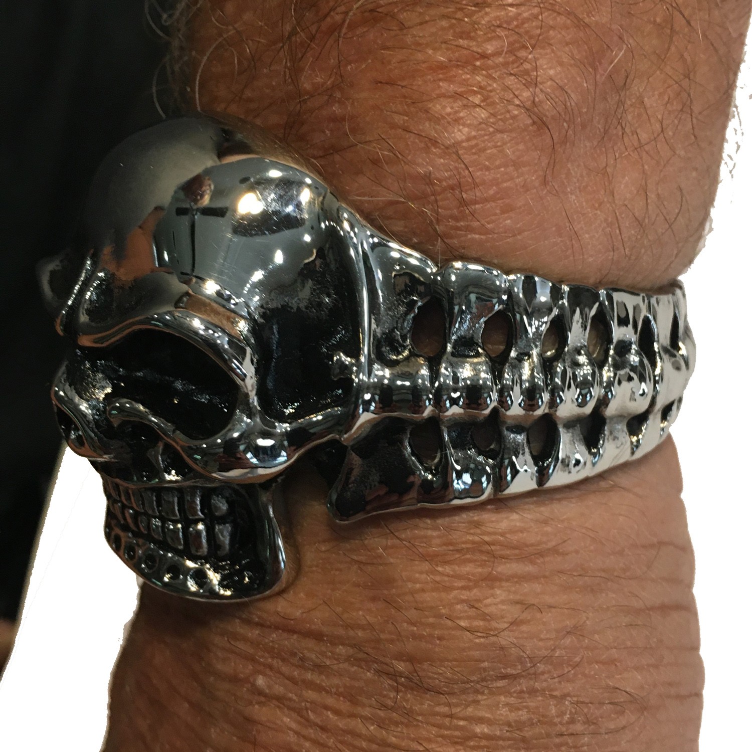 SKULL CUFF BRACELET WITH SKULLS ON SIDES STAINLESS STEEL