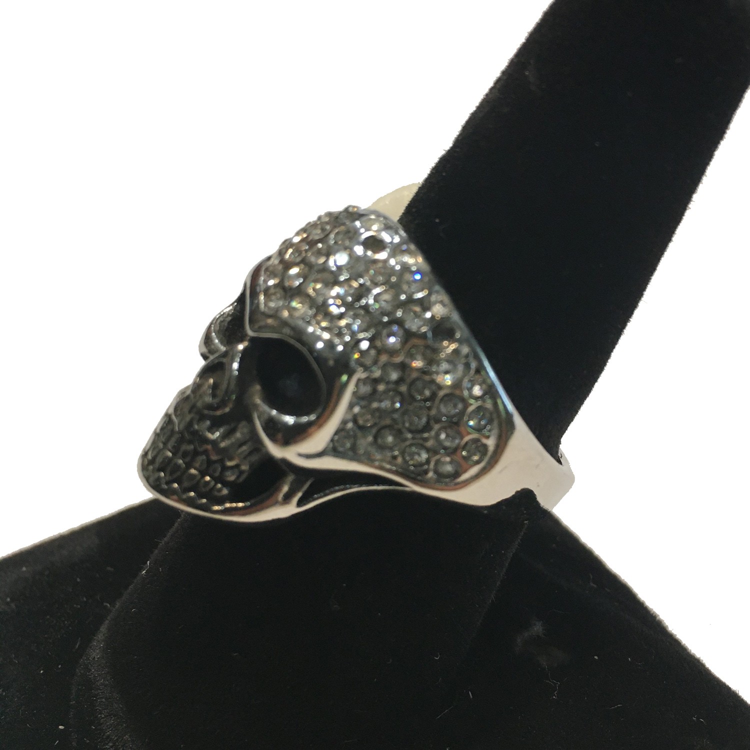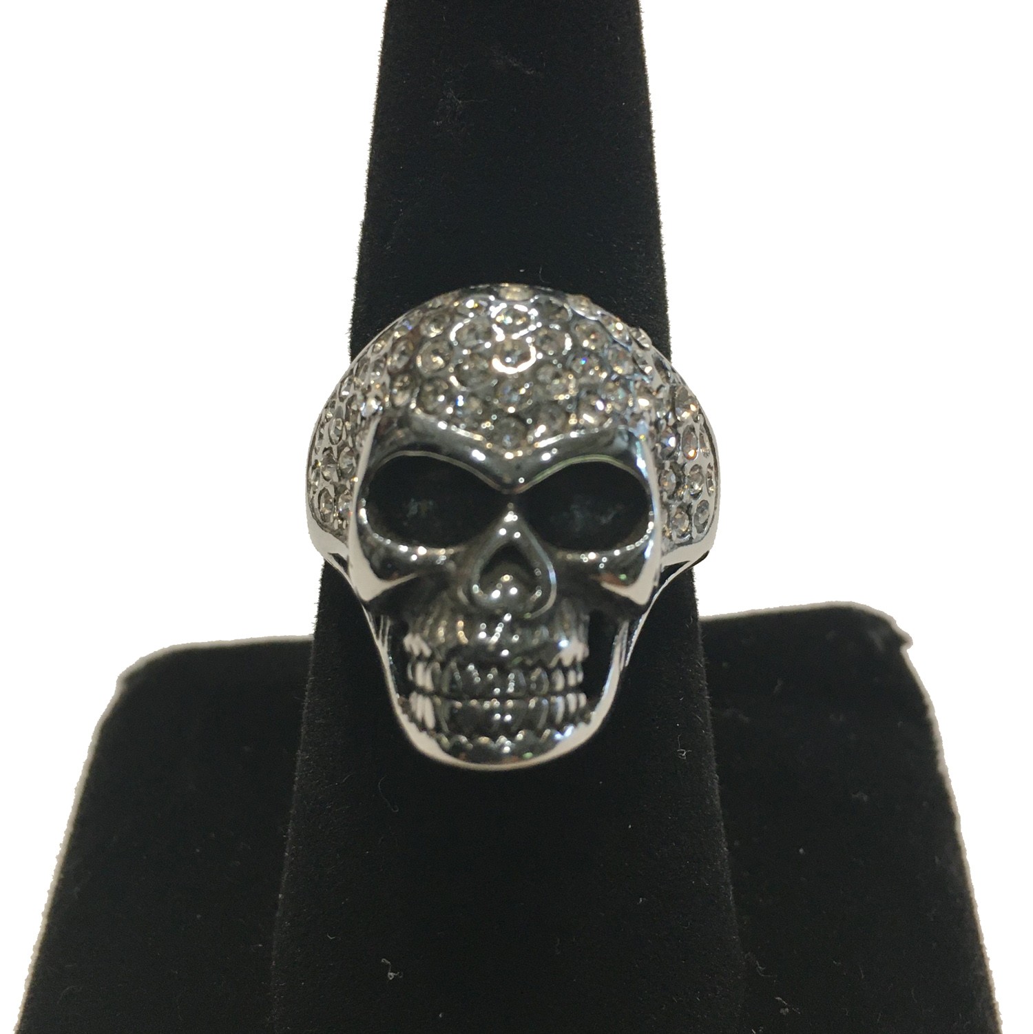 SKULL FULL HEAD WITH CLEAR CRYSTAL HEAD LADIES STAINLESS STEEL