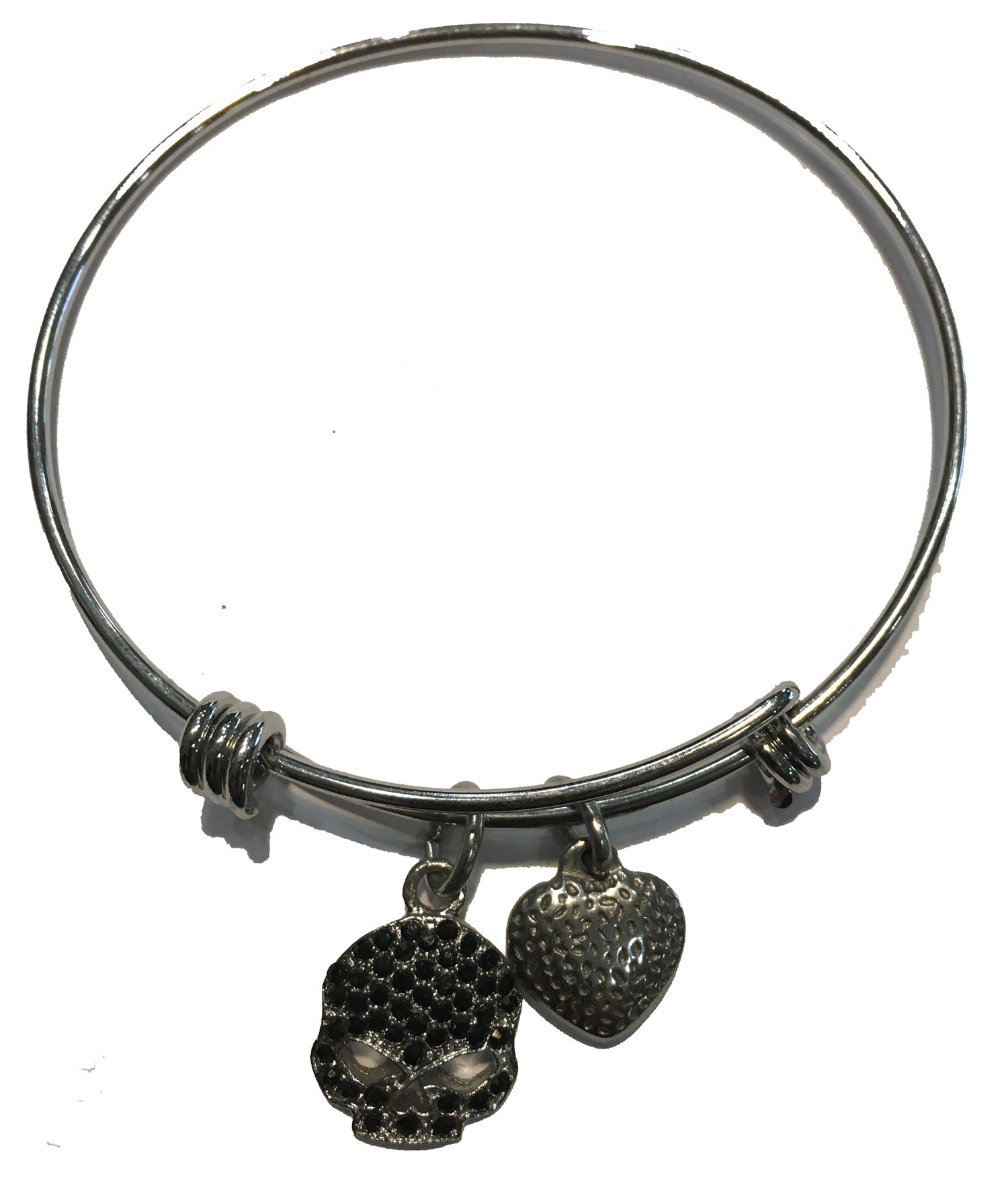 ALEX & ANI STYLE BRACELET WITH BLACK CRYSTAL SKULL STAINLESS STEEL