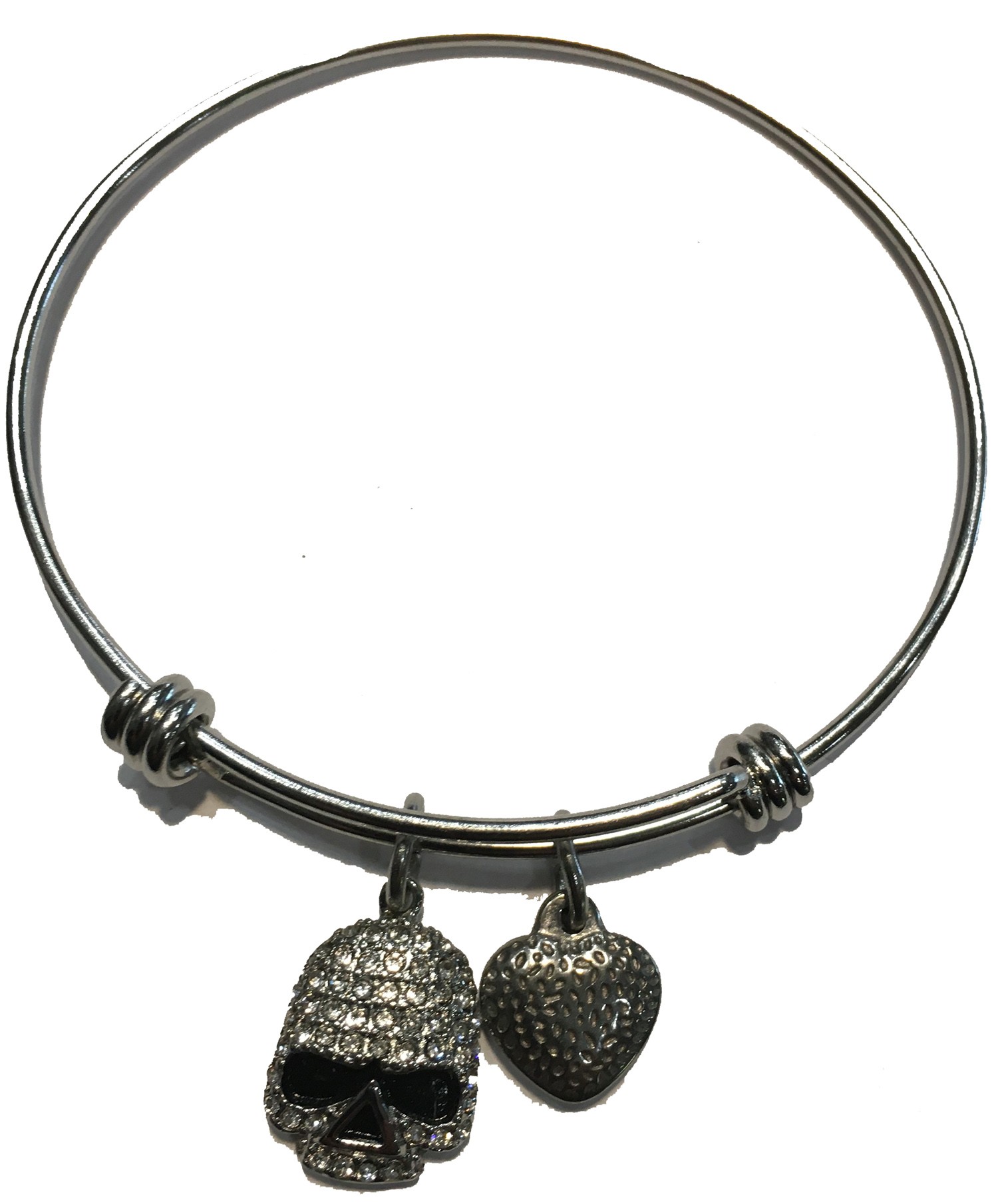 ALEX & ANI STYLE BRACELET WITH CLEAR CRYSTAL SKULL STAINLESS STEEL