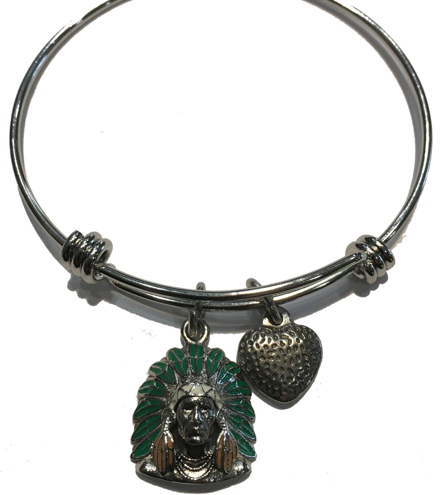 ALEX & ANI STYLE BRACELET WITH TEAL GREEN INDIAN HEAD STAINLESS STEEL