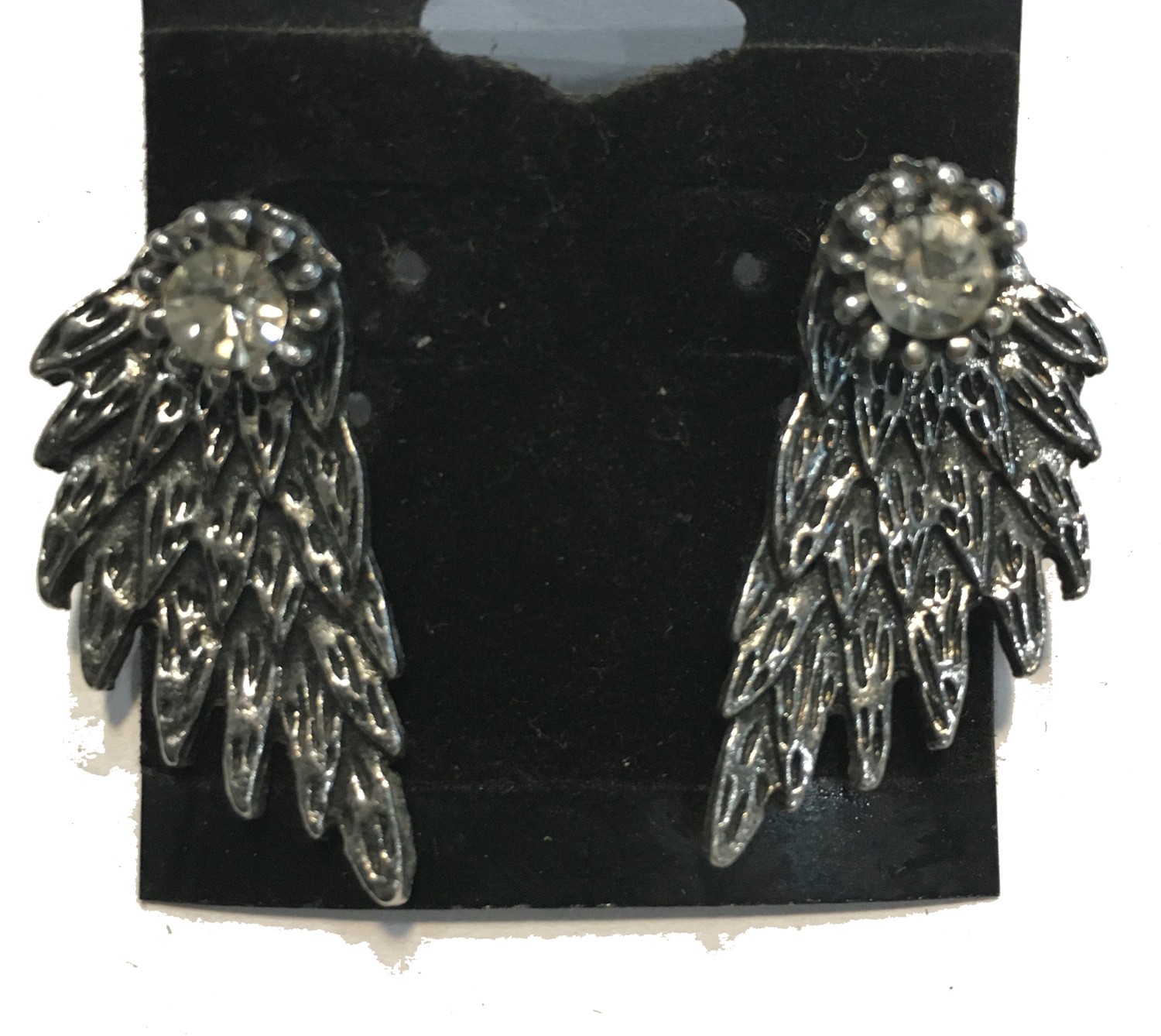 ANGEL WING WITH 3 DIMENSIONAL INLAID CRYSTAL EARRINGS POST STAINLESS STEEL