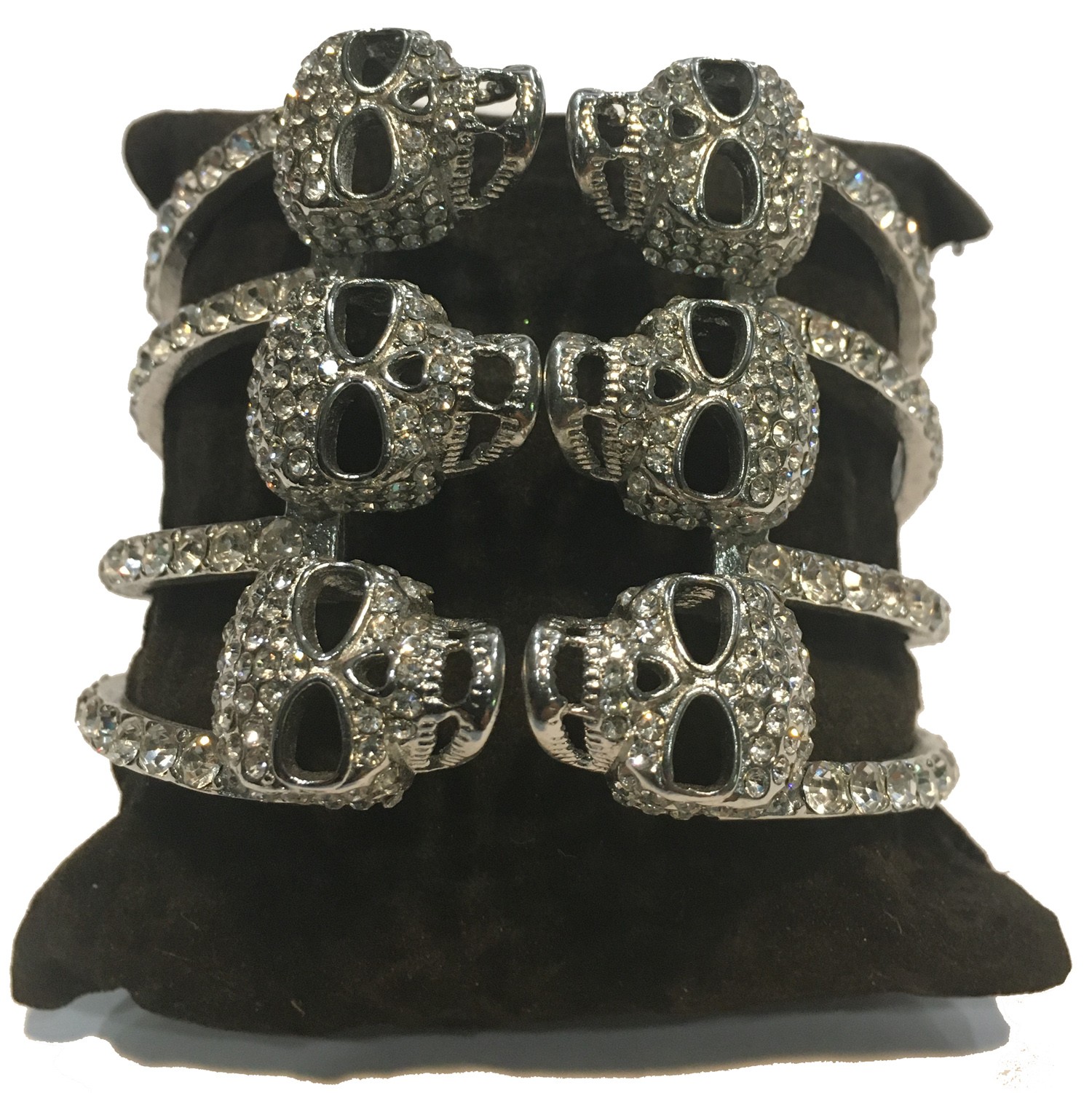 BRACELET 6 PACK SKULL CLEAR BLING STONES STAINLESS STEEL