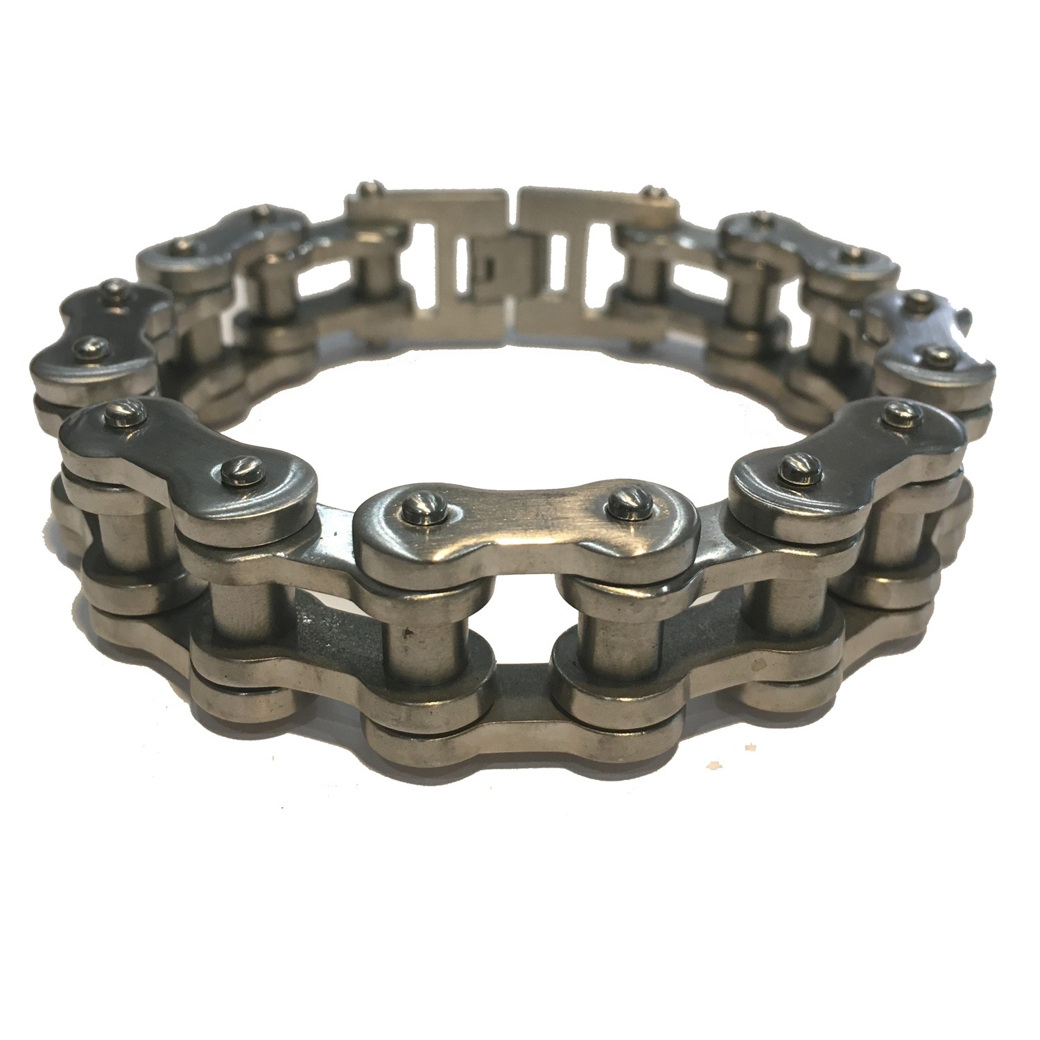 BRUSHED SILVER MENS MOTORCYCLE CHAIN BRACELET STAINLESS STEEL 9-1/4" X 5/8"