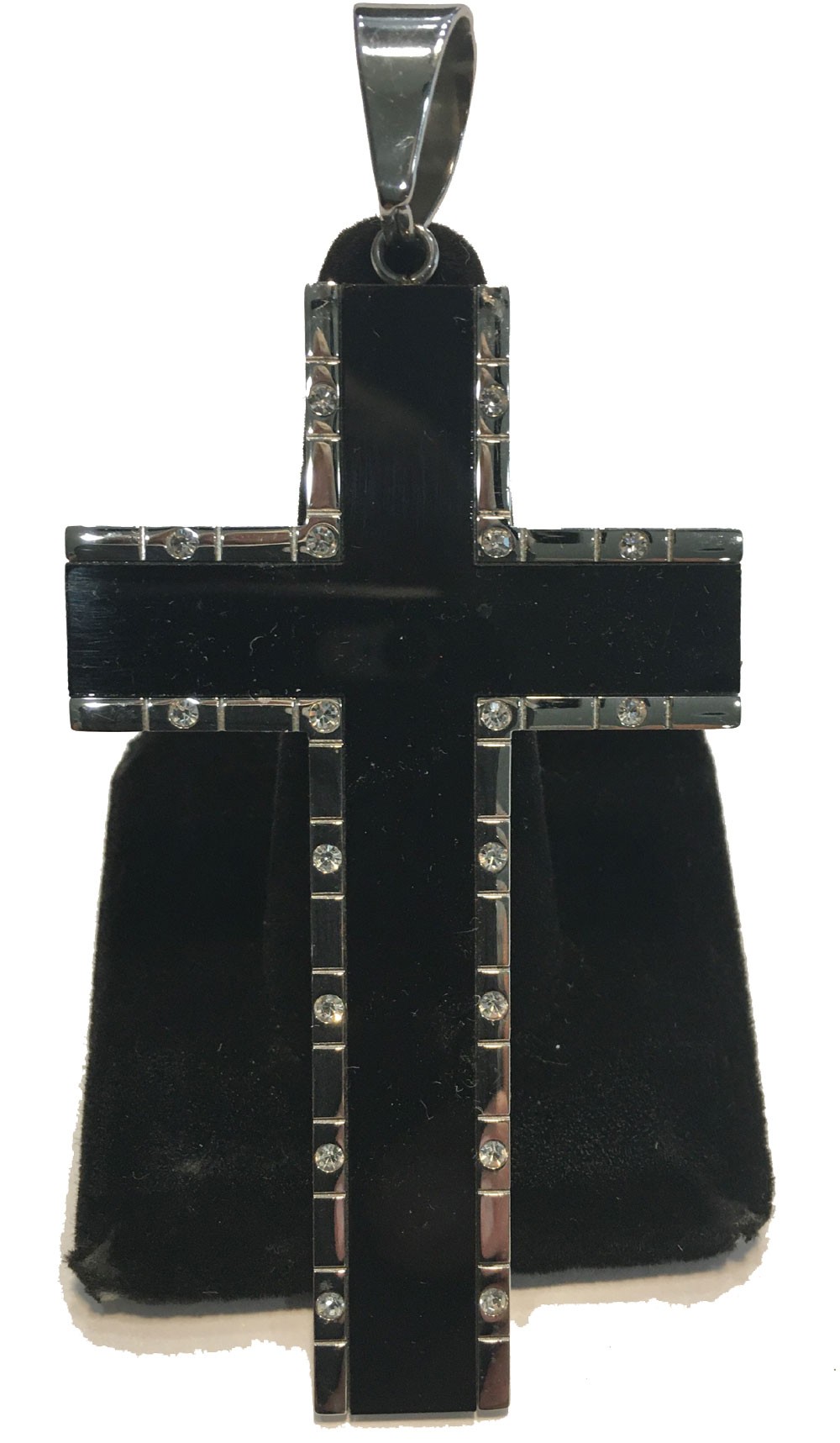 CROSS 4" ONYX INLAY WITH SILVER OUTLINE PENDANT STAINLESS STEEL