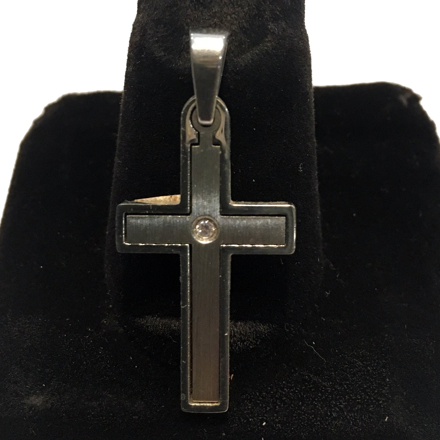 CROSS SMALL ALL SILVER WITH 1 CLEAR CRYSTAL ACCENT STAINLESS STEEL