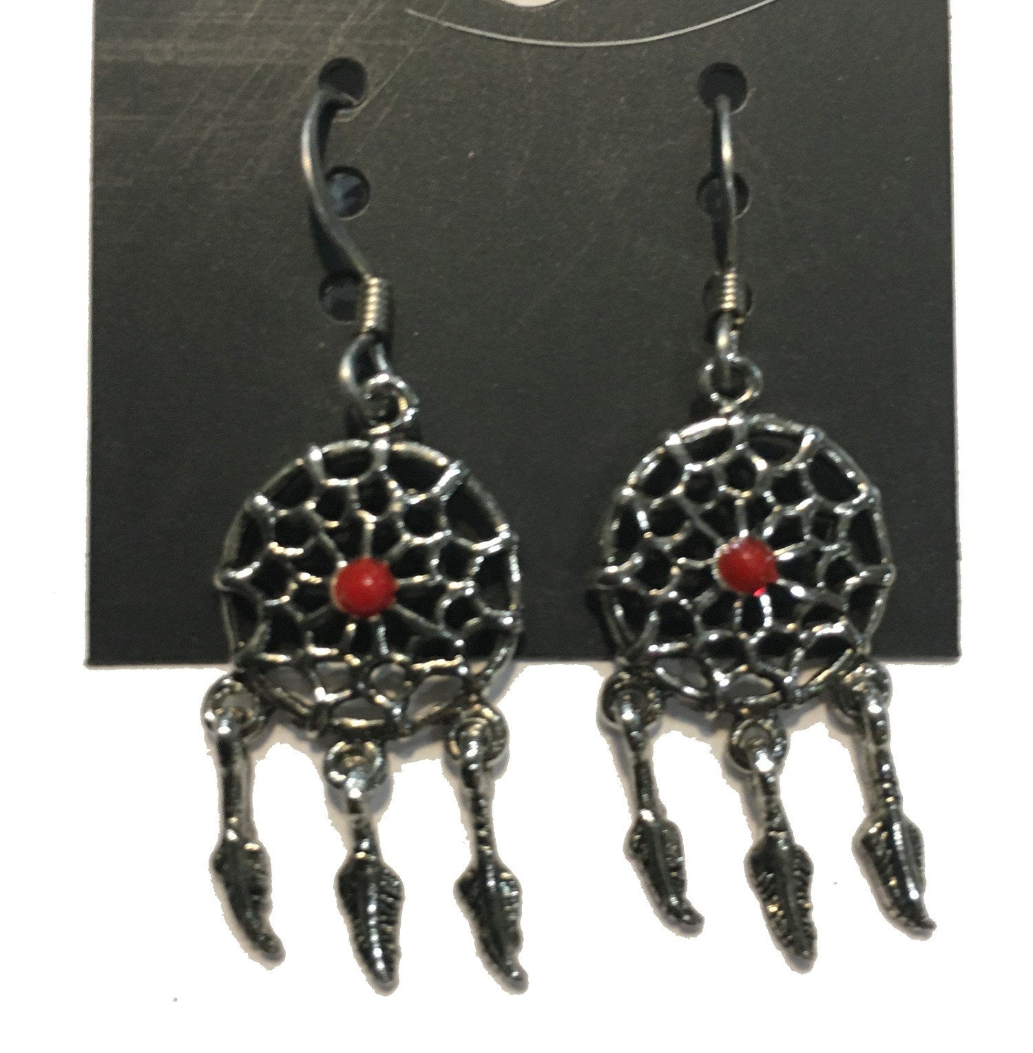 DREAMCATCHER WITH RED ACCENT EARRINGS STAINLESS STEEL