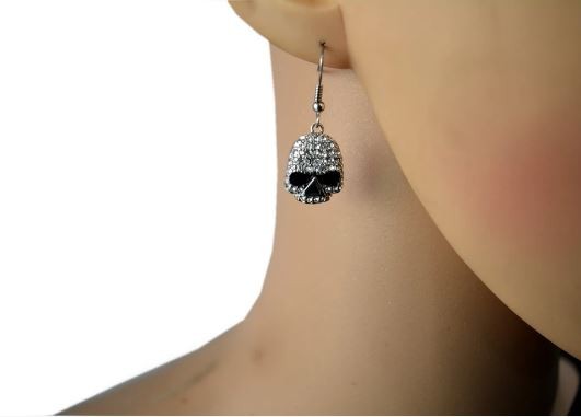 Earrings Stainless Steel Skull Embellished Imitation Diamonds French Wire 5/8" Tall