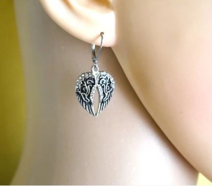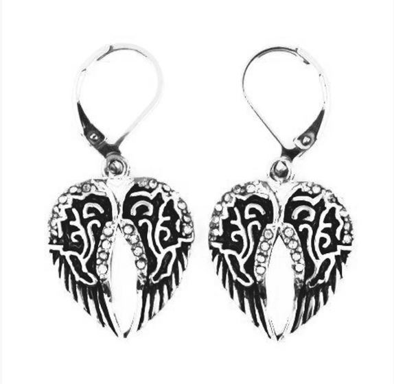 Foxtail Wing Earrings Lever Back Imitation Diamonds Stainless Steel