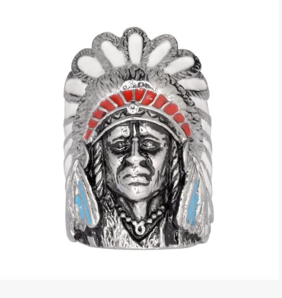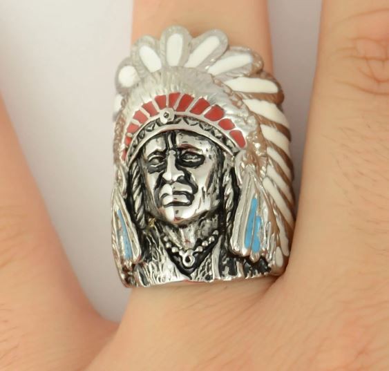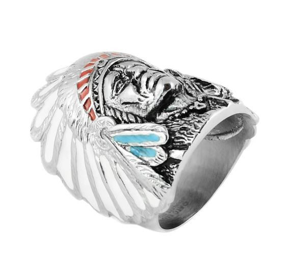Gents Indian Head Ring With Enamel Stainless Steel Motorcycle Jewelry