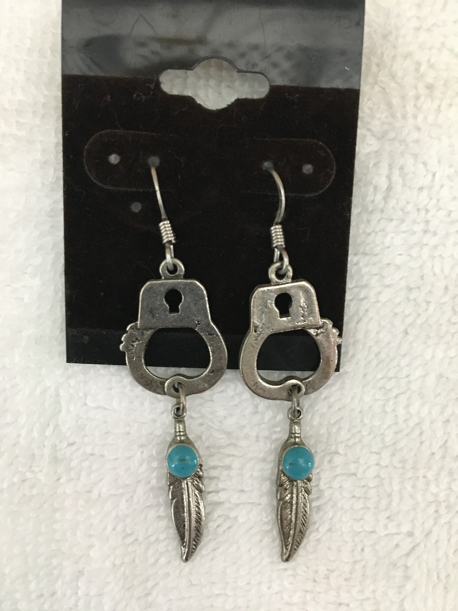 Handcuff with turquoise feather