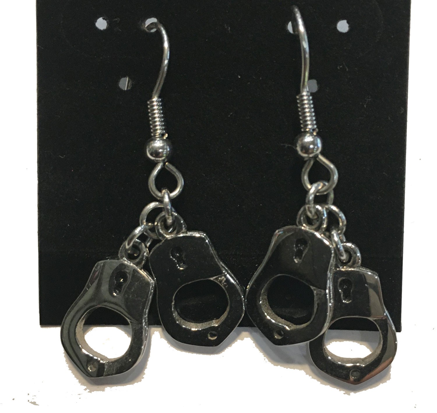 HANDCUFFS DOUBLE ON FRENCH WIRE EARRINGS STAINLESS STEEL
