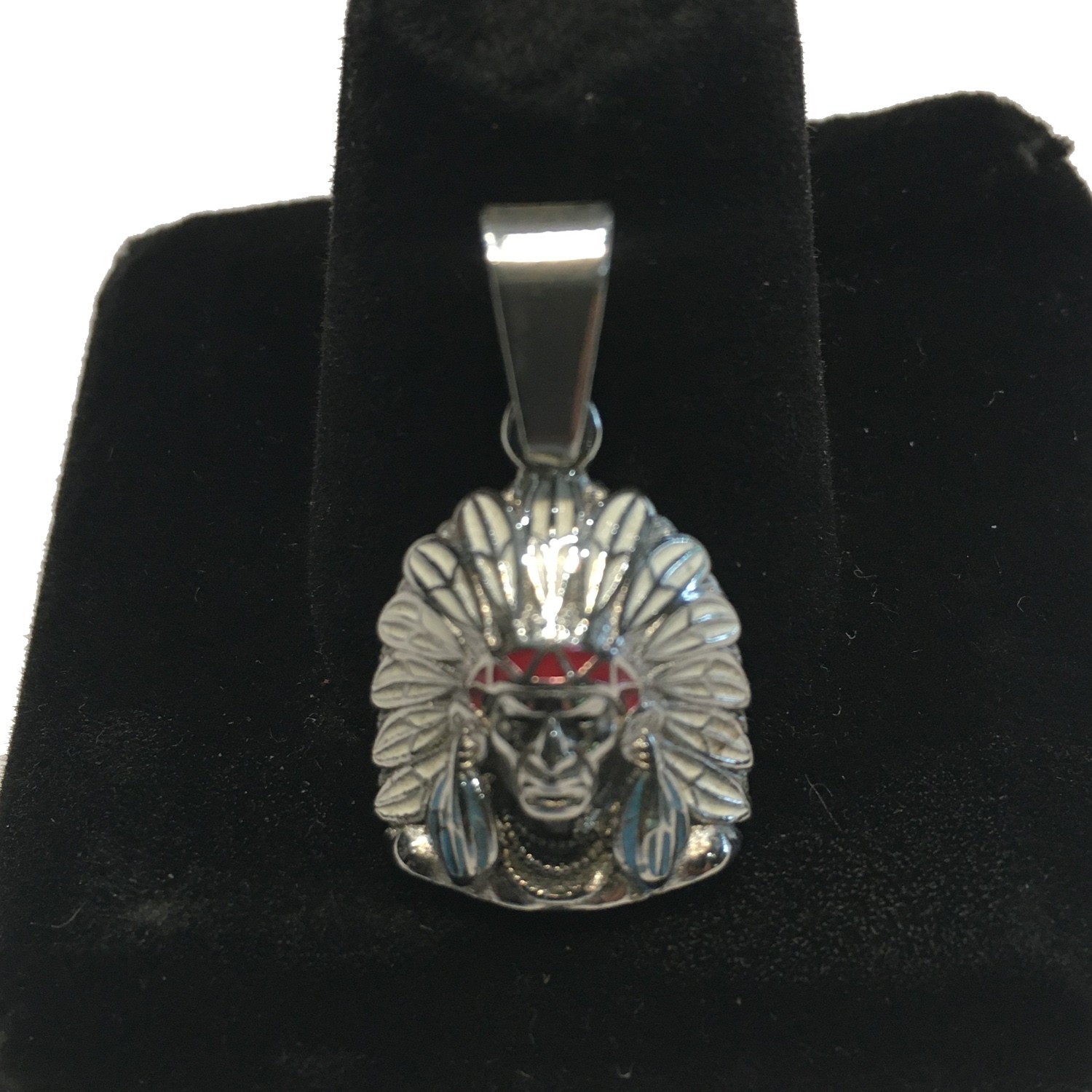 INDIAN HEAD RED BLUE PENDANT STAINLESS STEEL 1" TALL