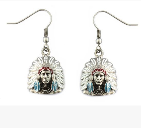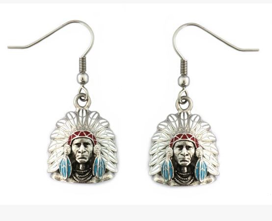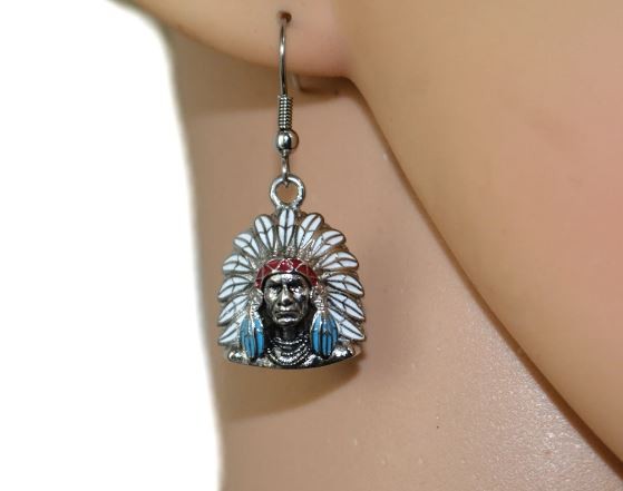 Indian Headdress Bust Earrings Stainless Steel Colors Red White Blue Red Brown Green Brown