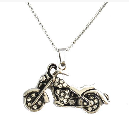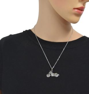 Ladies Bling Pendant With Necklace 19" Stainless Steel Motorcycle Jewelry
