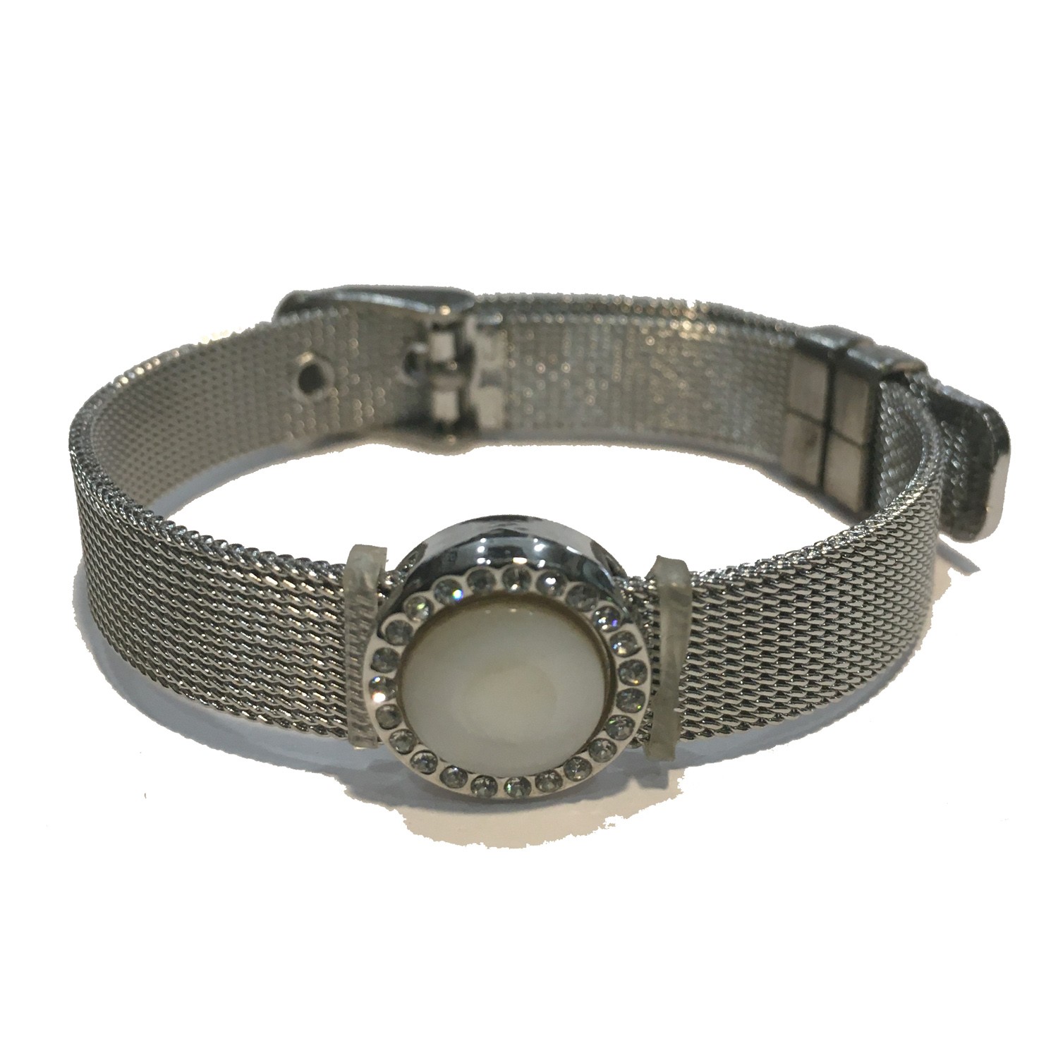 MESH SILVER KEEPER BRACELET WITH ANGEL WING SLIDE CHARM (ADDITIONAL CHARMS AVAILABLE) STAINLESS STEE