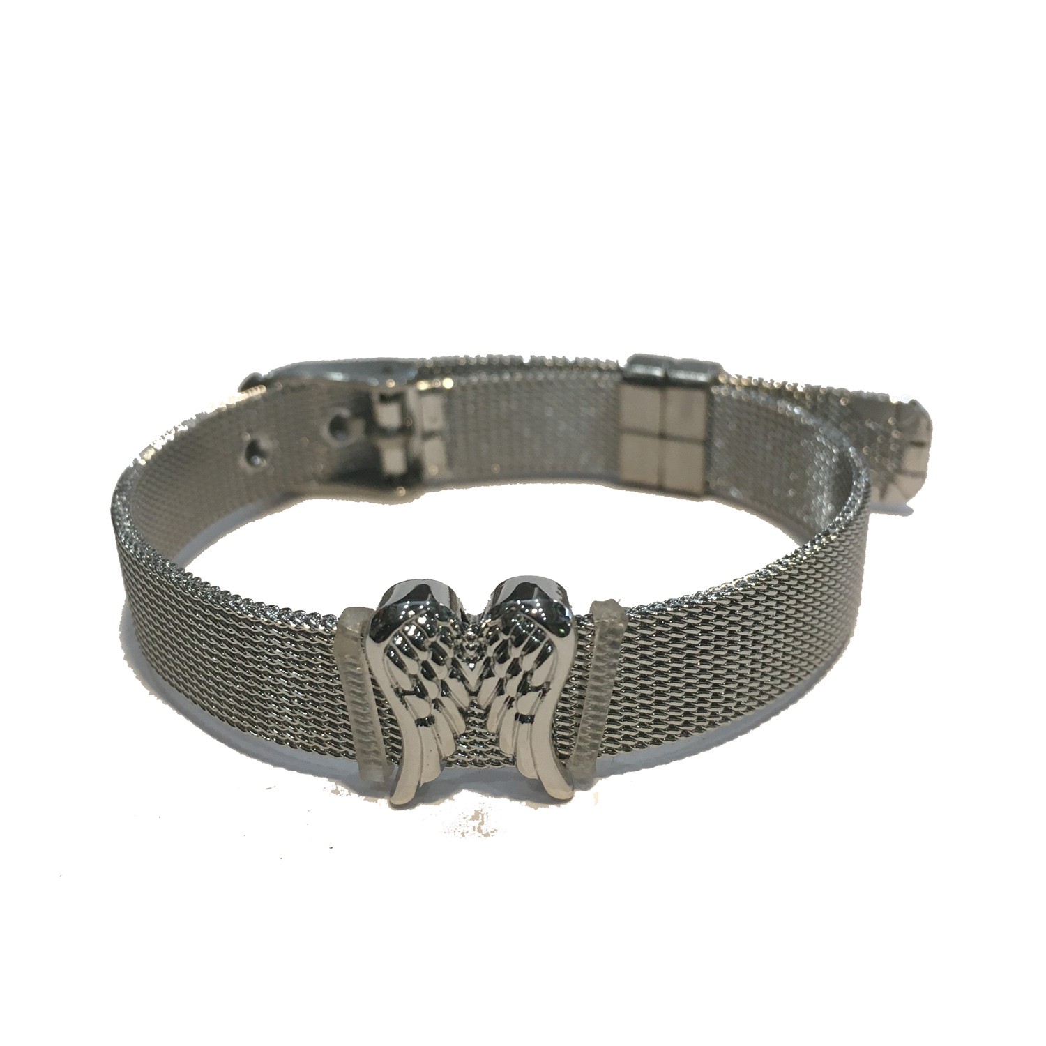 MESH SILVER KEEPER BRACELET WITH CLEAR CRYSTAL EMBELLISHED PEARL (ADDITIONAL CHARMS AVAILABLE) STAINLESS STEEL