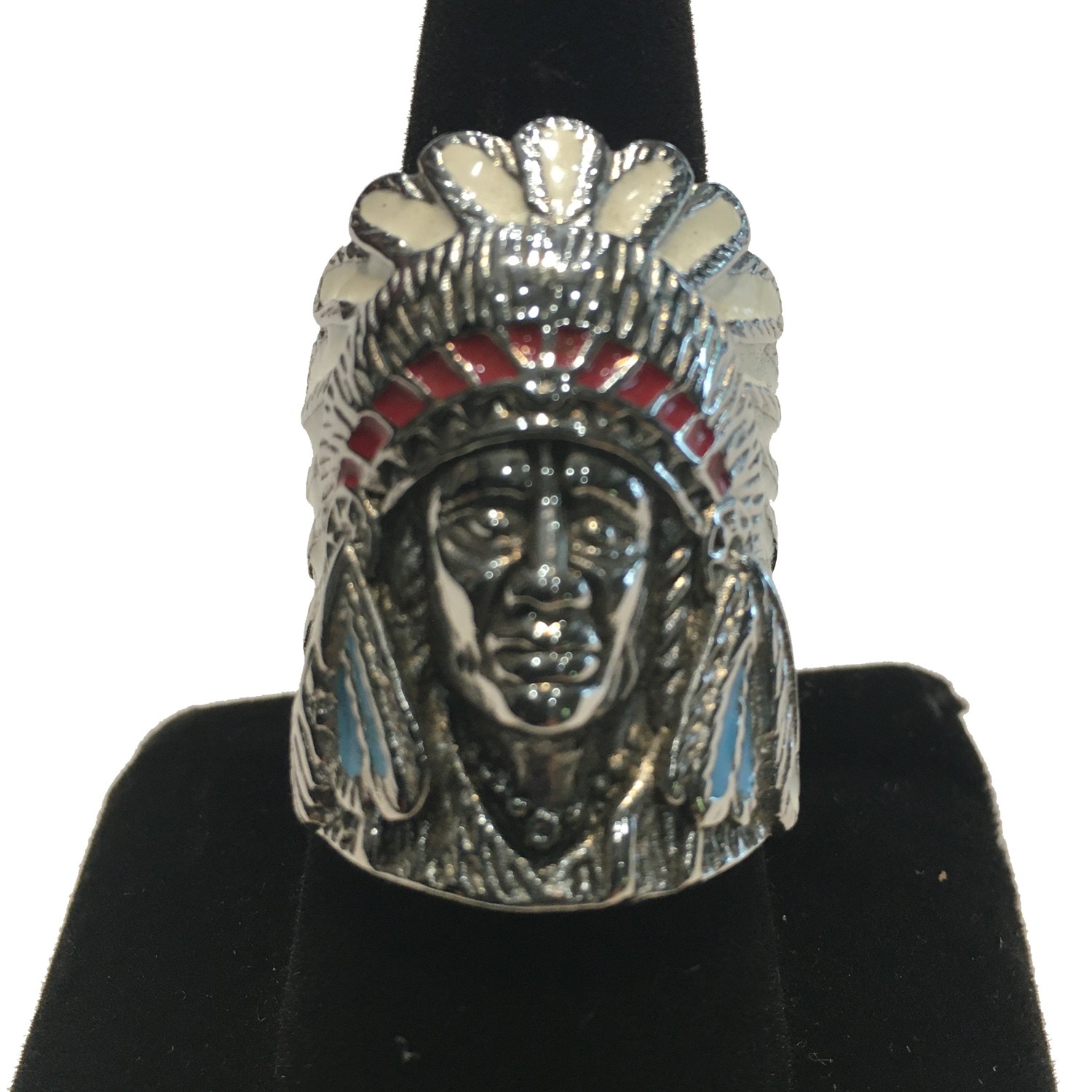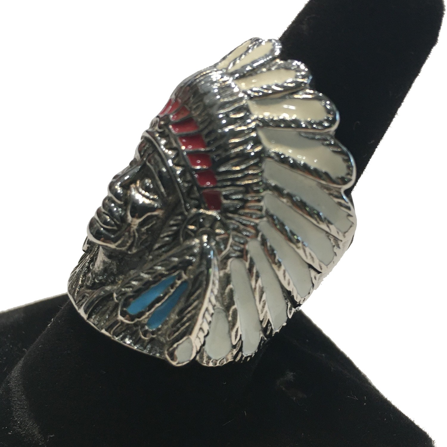 PAINTED INDIAN HEAD MENS RING STAINLESS STEEL