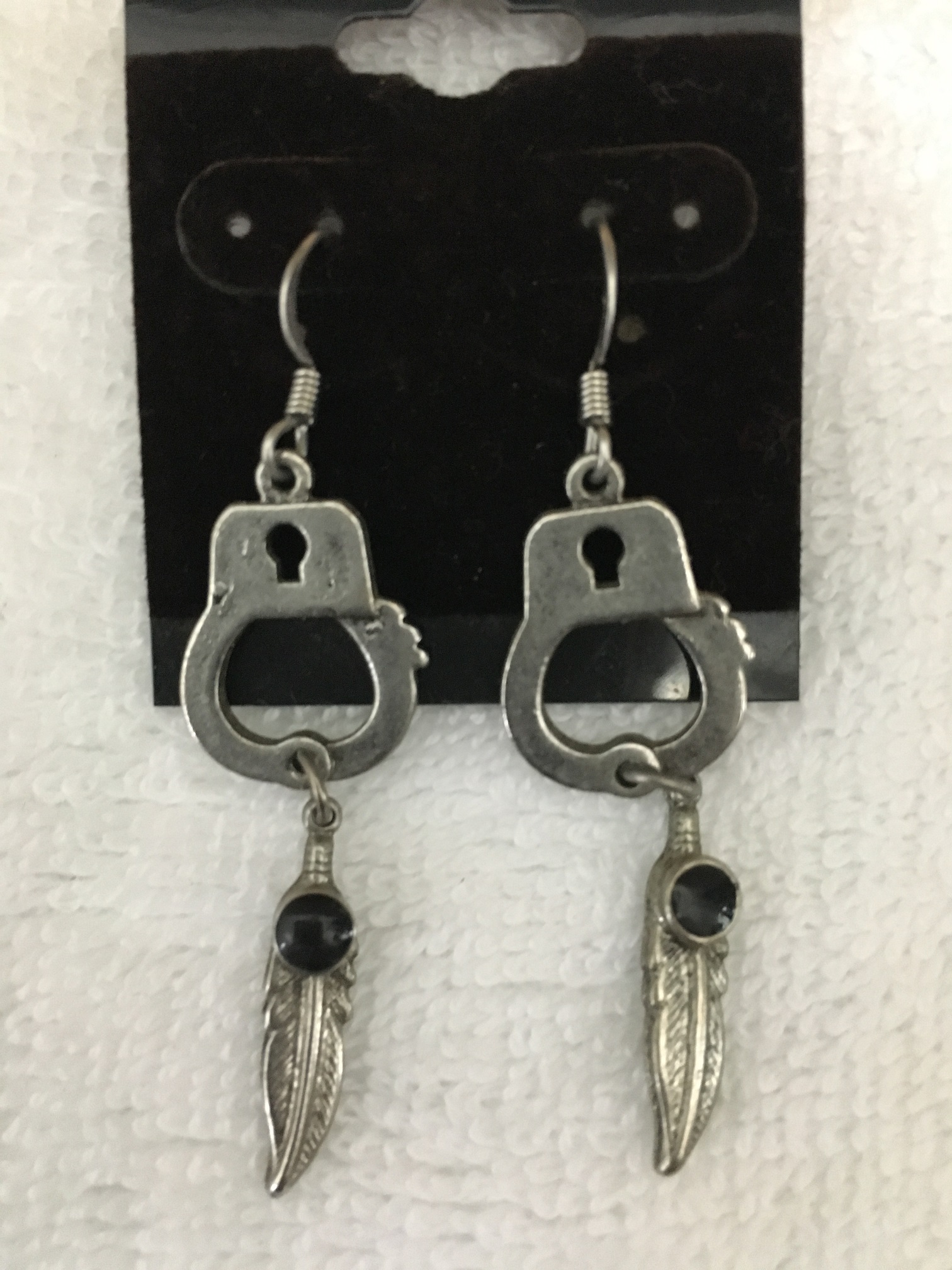Single handcuff with black crystal feather