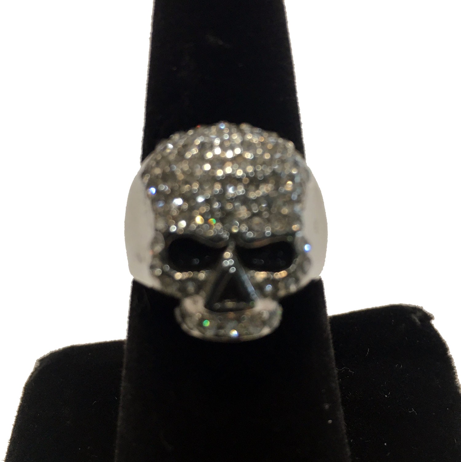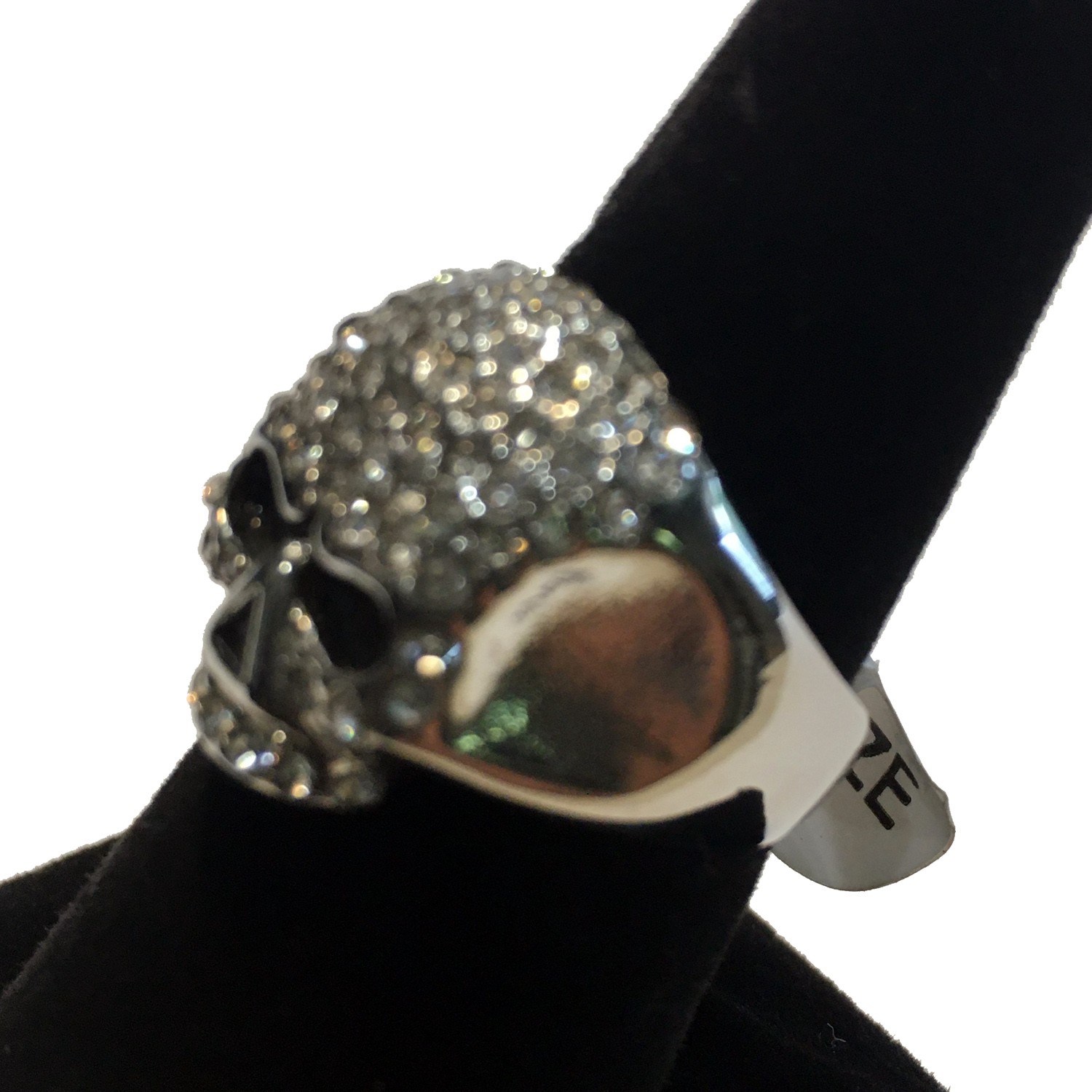 SKULL CRYSTAL RING CLEAR STAINLESS STEEL 5-10