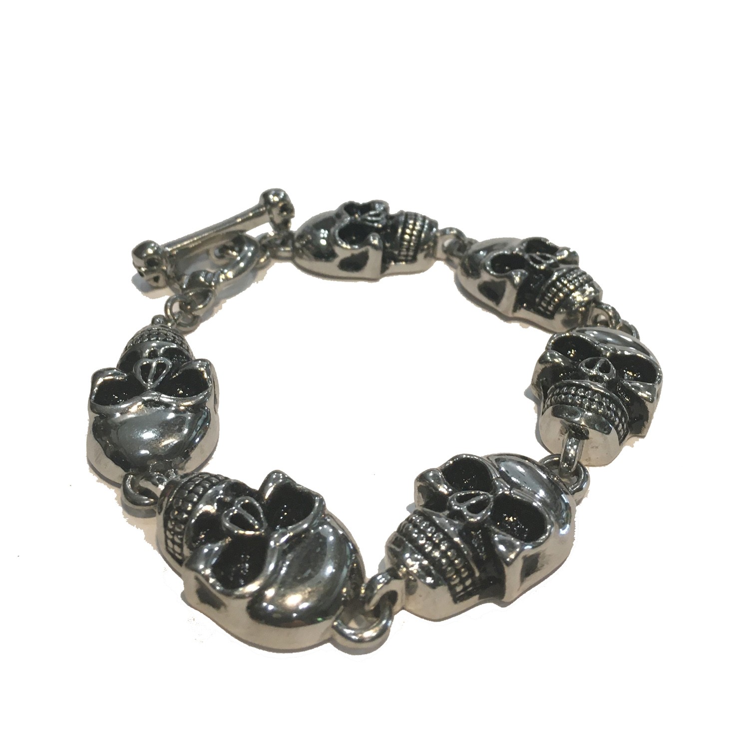 SKULL SILVER CHAIN UNISEX BRACELET WITH TOGGLE CLASP STAINLESS STEEL