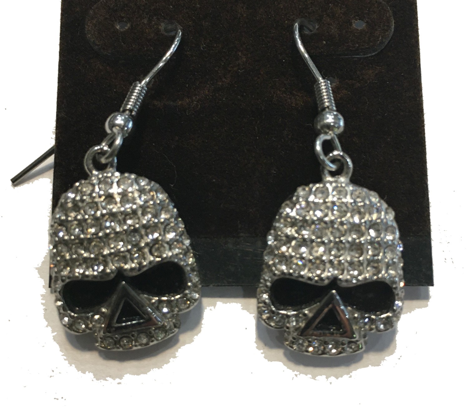 SKULL WITH ALL CLEAR CRYSTALS DANGLE EARRINGS STAINLESS STEEL