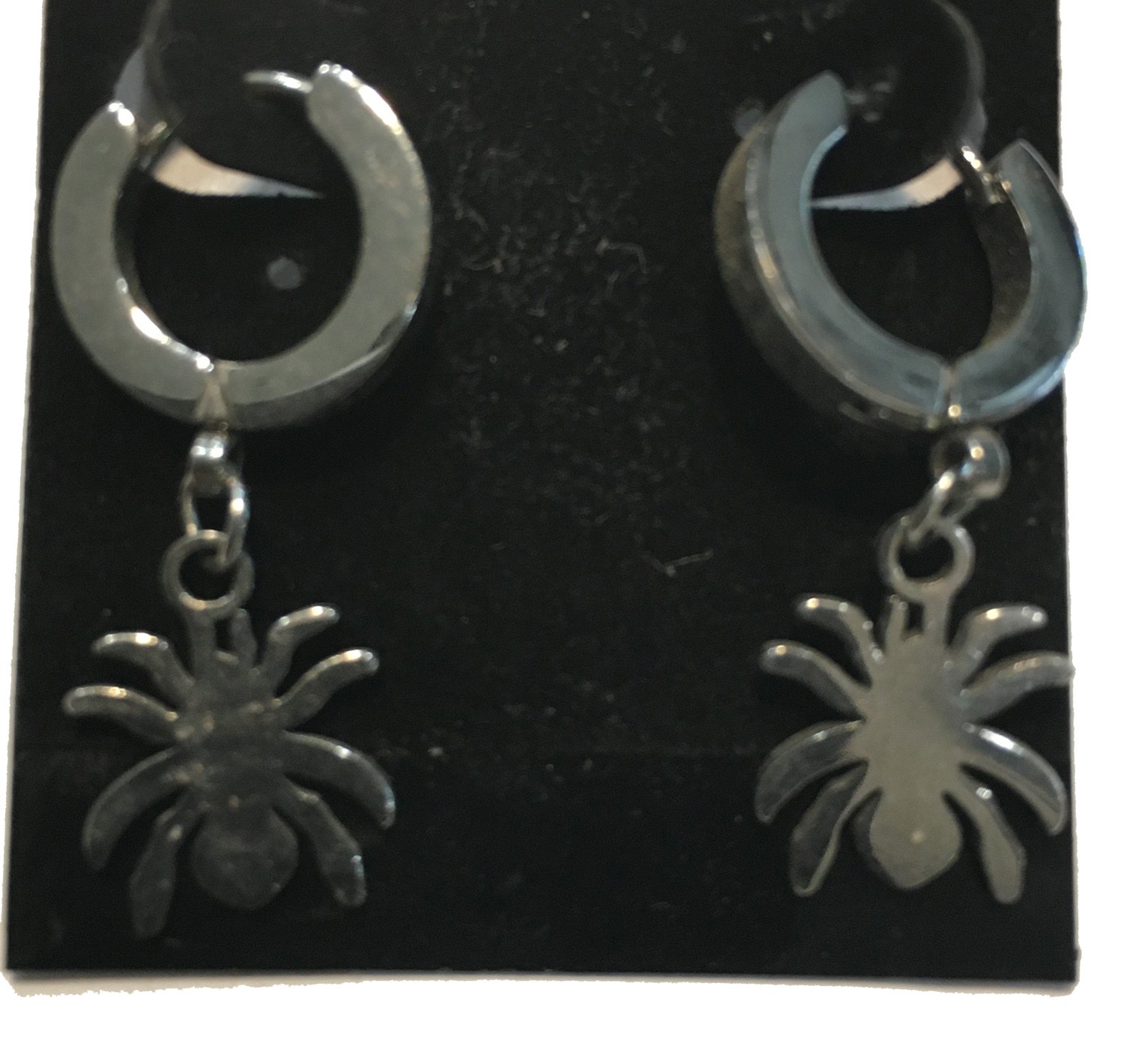 SPIDER ON SMALL HOOP EARRINGS STAINLESS STEEL