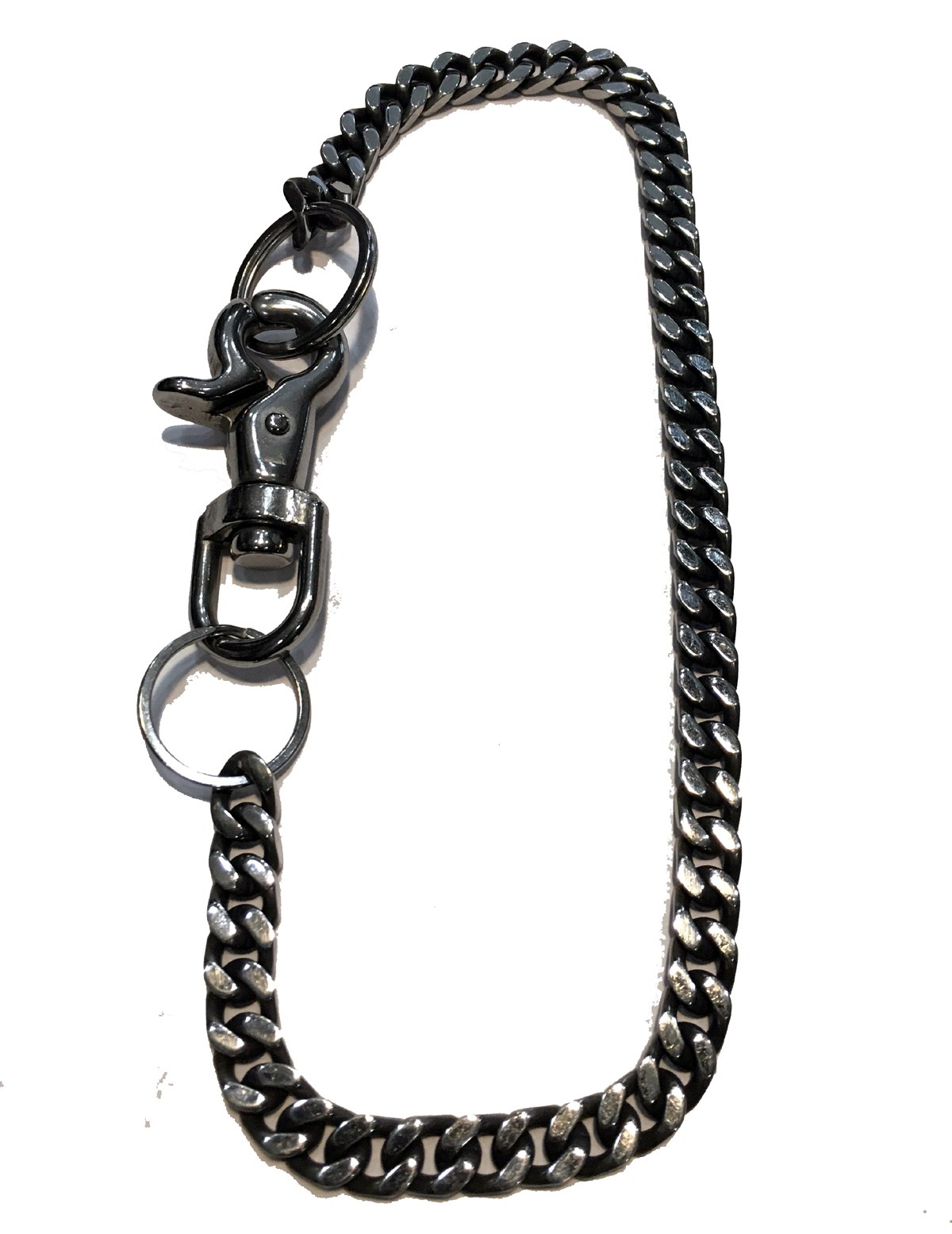 WALLET CHAIN CURB SILVER WITH BLACK 12MM STAINLESS STEEL 18", 24" & 30"