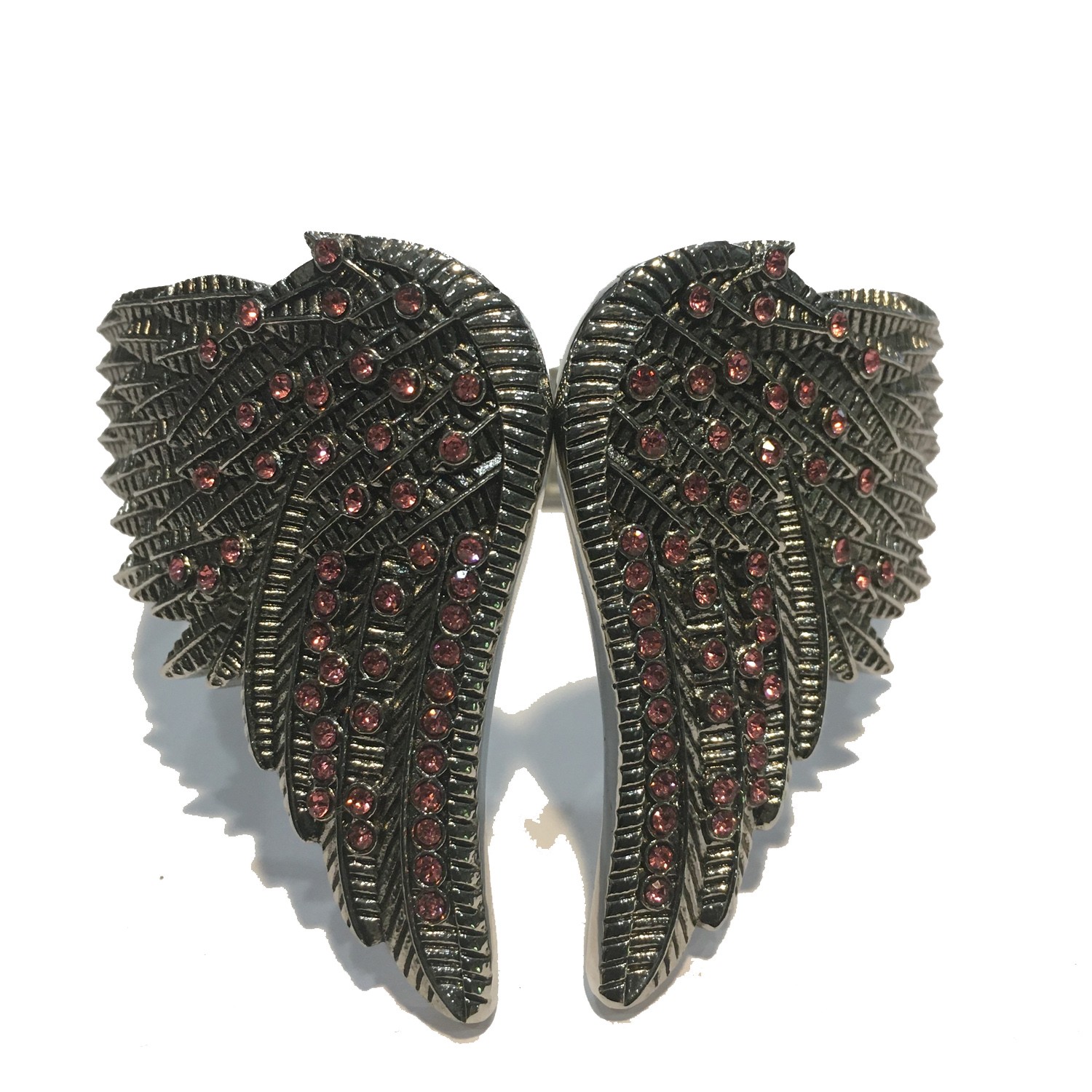 WING HEART BANGLE WITH BLING PINK STAINLESS STEEL