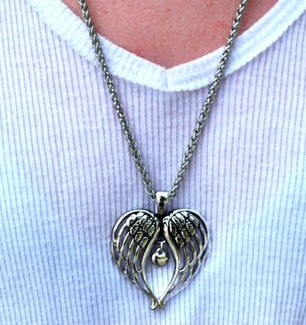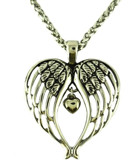 Winged Heart Pendant Stainless Steel With 24" Necklace
