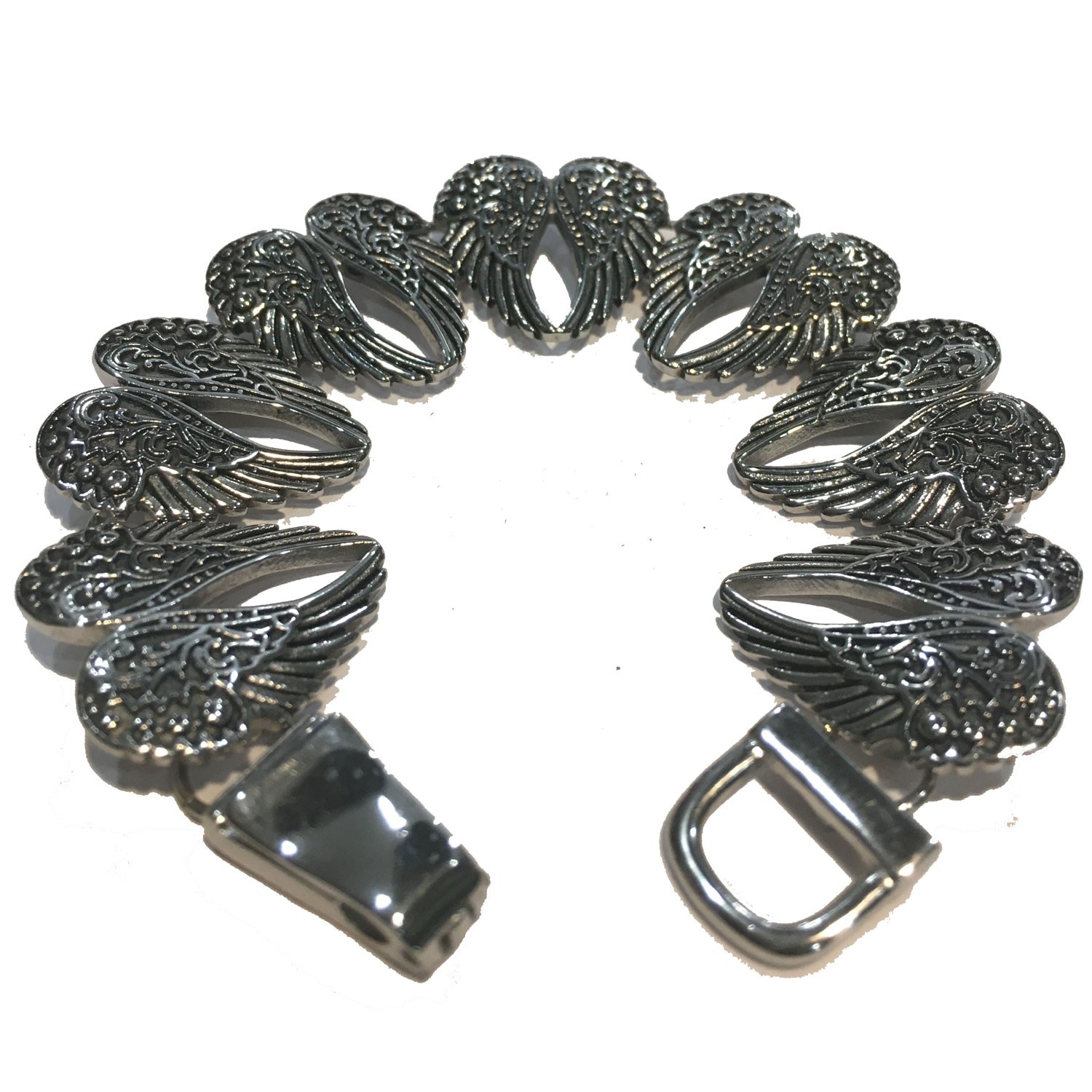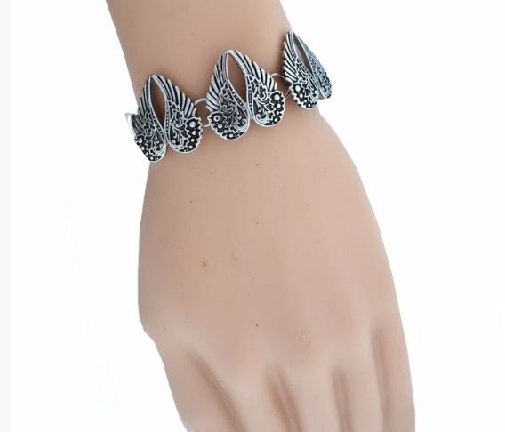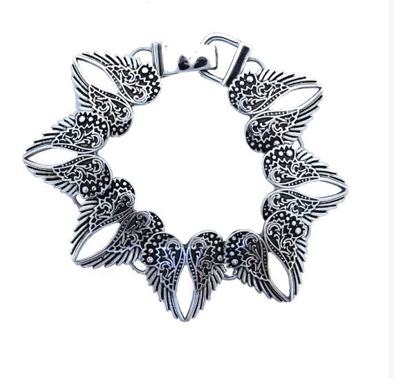 Wings Heart Bangle Imitation Diamonds Stainless Steel Heavy Metal Jewelry